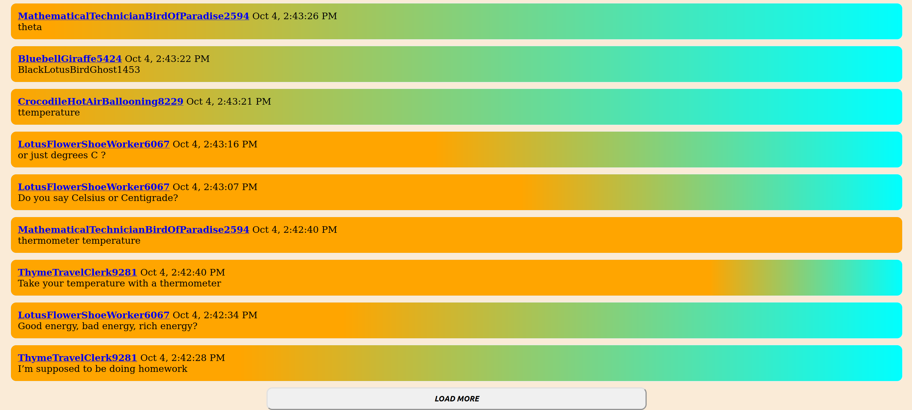 Posts were sorted on how closeness to a secret topic, with a prize for whichever user guessed the topic. The topic was "Temperature" and it was discovered in under 1 day.